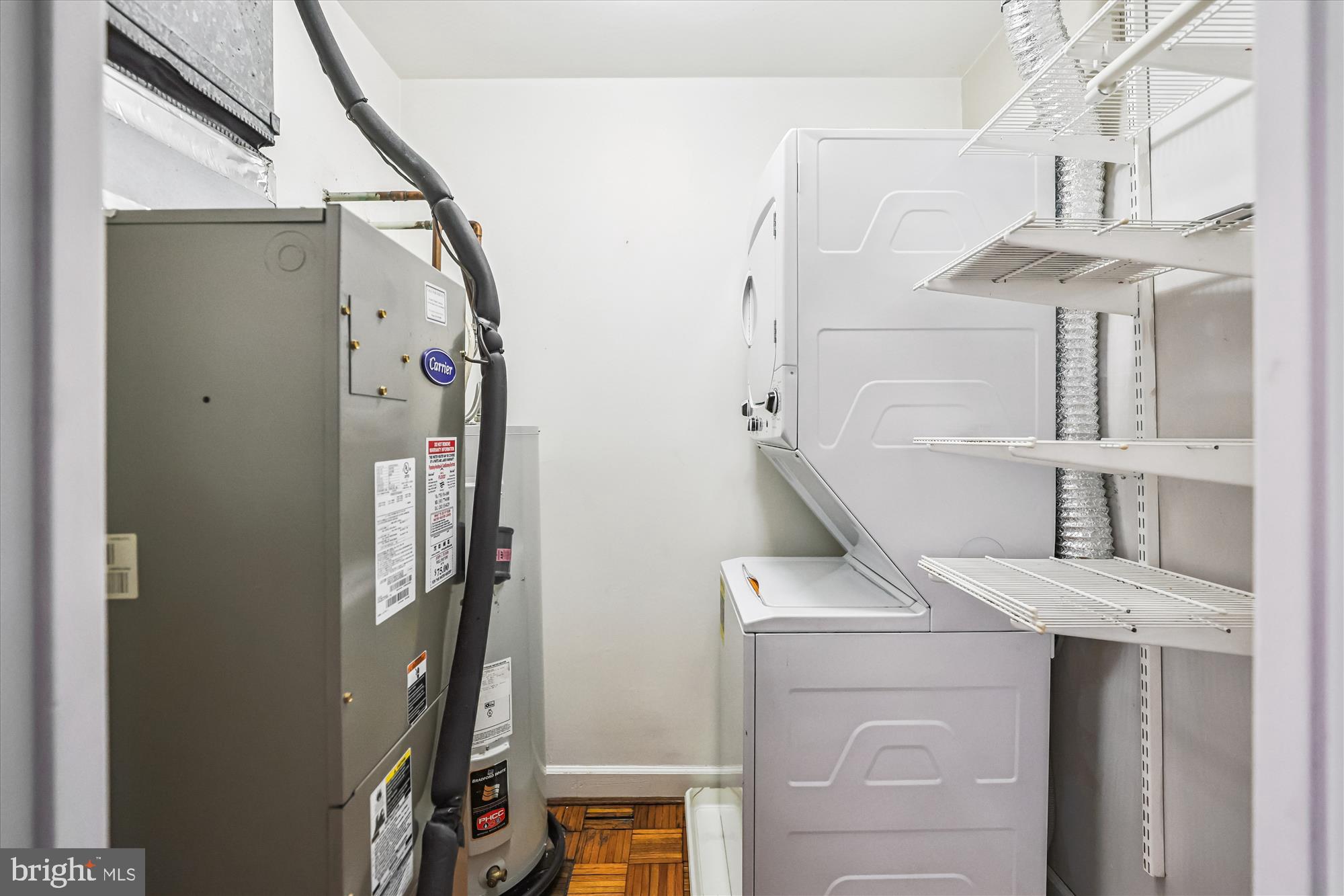 Light and Airy 2 bedroom unit with gleaming wood floors, nicely updated kitchen, washer/dryer in the unit, and a wood burning fireplace! Also includes 1 GARAGE space!! Wow! All of this located in the wonderful Dupont Circle area and .6 miles to the metro. Lovely flagstone patio area gives you a serene space to be outside and away from the hustle and bustle. City living at it's finest with shops and restaurants a short stroll away. Entrance is off T street, Building 1803, apartment B (legally #3).